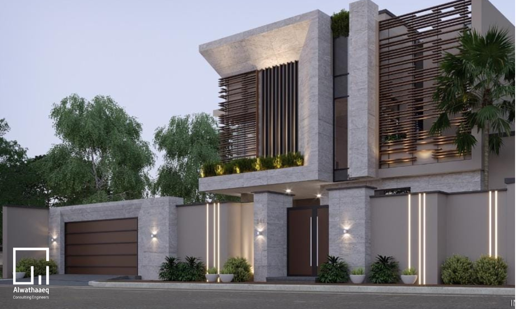 قام مكتب الوثائق للاستشارات الهندسية بالإشراف والمتابعة لأعمال الهيكل الإنشائي (العظم) من بدء أعمال الحفر إلى صب سقف الدور الثاني (الملحق العلوي) لمشروع فيلا سكنية بالبيانات التالية